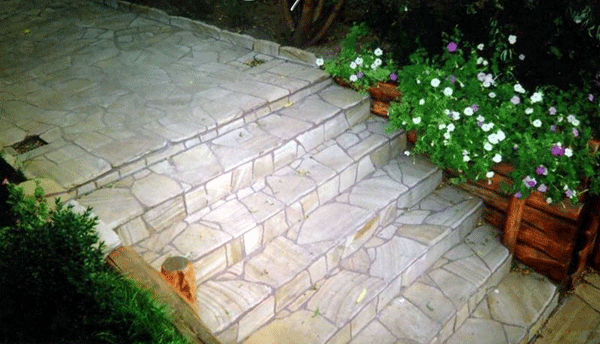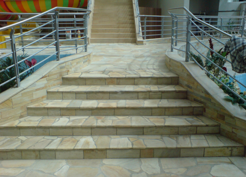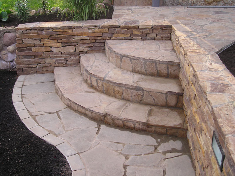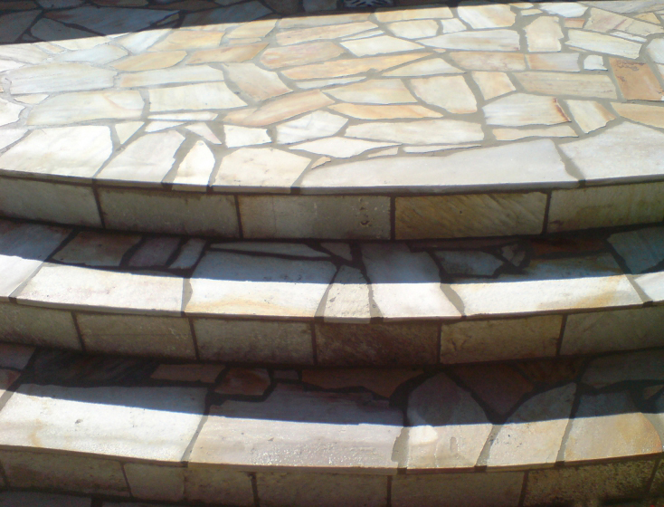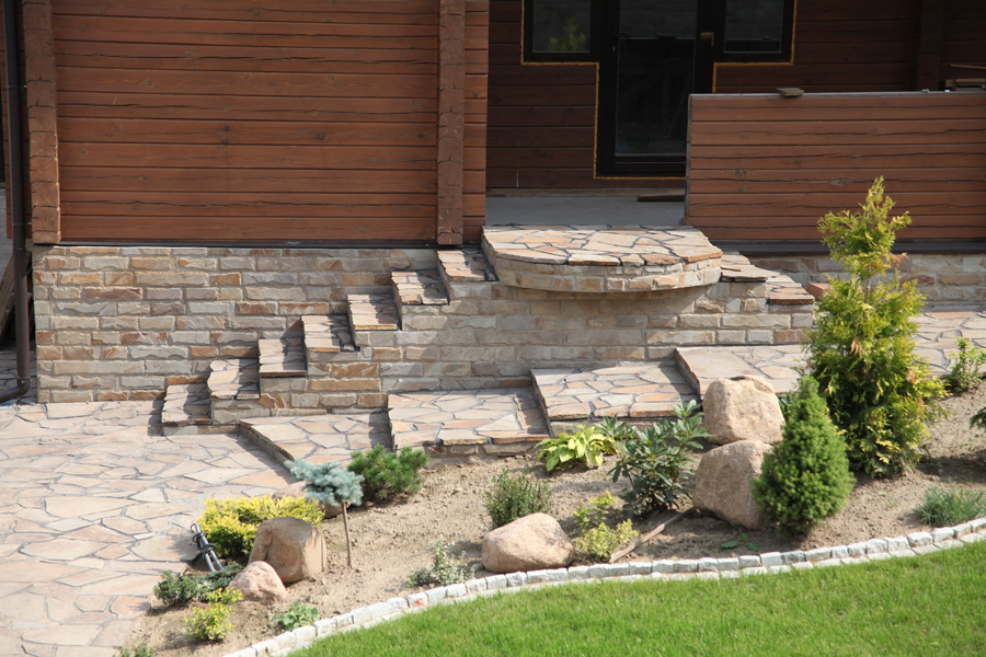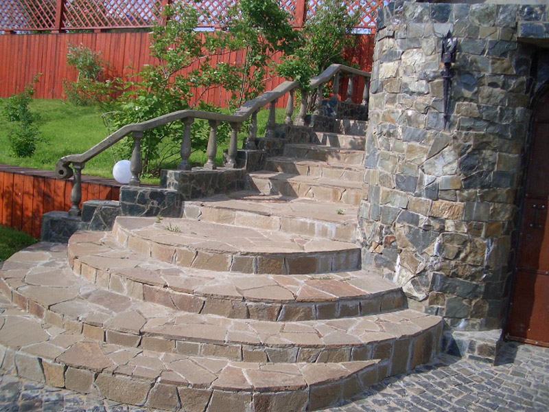 Ступени и лестницы из песчаника и плитняка используются преимущественно во внешней отделке.